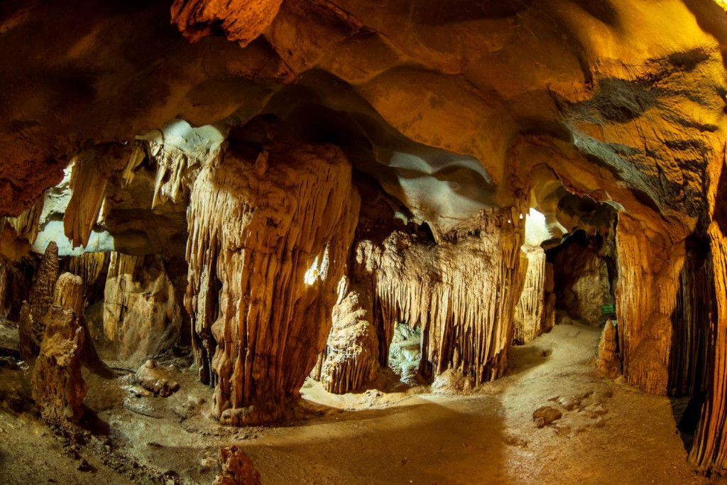 Tại đây bạn có thể ngắm nhìn những búp thạch nhũ được kiến tạo trong hàng triệu năm với nhiều hình dạng và kích cỡ khác nhau. Phía trước hang là hòn Con Rùa, bên phải là Cổng Trời.